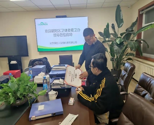 2021年11年10日下午朝陽區(qū)衛(wèi)健委愛衛(wèi)辦主任魏傳昌蒞臨北京綠巨人生物科技有限公司(以下簡(jiǎn)稱綠巨人)進(jìn)行審核備案,綠巨人董事長(zhǎng)李運(yùn)標(biāo)、工程部經(jīng)理李新平全程陪同。