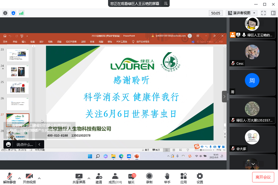 線上方面,北京綠巨人攜手北京市左家莊街道及崔各莊地區(qū),于6月6日當(dāng)天,開展 “6月6日世界害蟲日主題消殺四害講座” 線上培訓(xùn),由沈陽(yáng)農(nóng)業(yè)大學(xué)植物保護(hù)專業(yè)錢海濤博士主講,傳播科學(xué)防制理念,消除疾病傳播危害,提升轄區(qū)內(nèi)單位、商戶及居民對(duì)有害生物防制的正確認(rèn)知、藥物安全管理及應(yīng)用、應(yīng)急處理方法及病媒防制專業(yè)公司如何選擇等消殺知識(shí),共計(jì)參加培訓(xùn)人數(shù)達(dá)300人,轄區(qū)單位和居民熱烈響應(yīng),在“專家問答環(huán)節(jié)中”,屏幕上布滿了居民們迫切想要了解的各種消殺問題,錢博士一一解決了他們居家和辦公中苦惱的防制四害的問題。