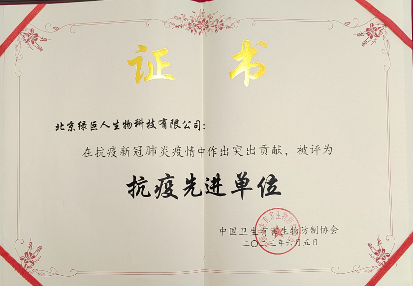 同時(shí),在2023年6月5日抗疫先進(jìn)單位頒獎(jiǎng)儀式上,北京綠巨人因在抗擊新冠肺炎疫情中作出突出貢獻(xiàn),被評(píng)為“抗疫先進(jìn)單位”。